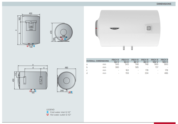 The Ariston Pro1-R 50L Horizontal Electric Water Heater offers powerful and energy-efficient performance with premium Italian engineering. Ideal for homes and offices, this 50-liter model features: